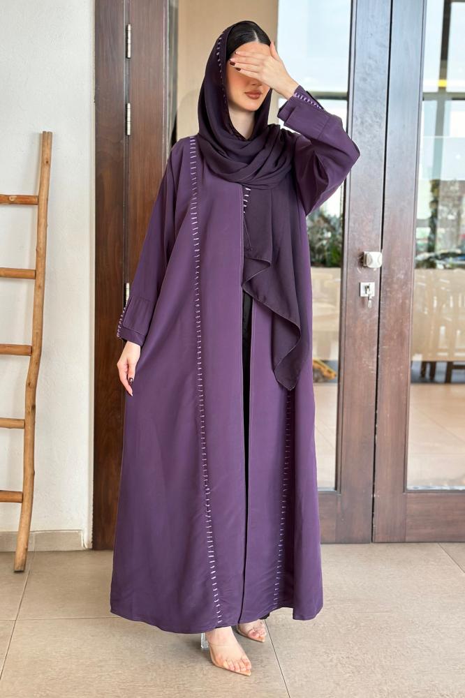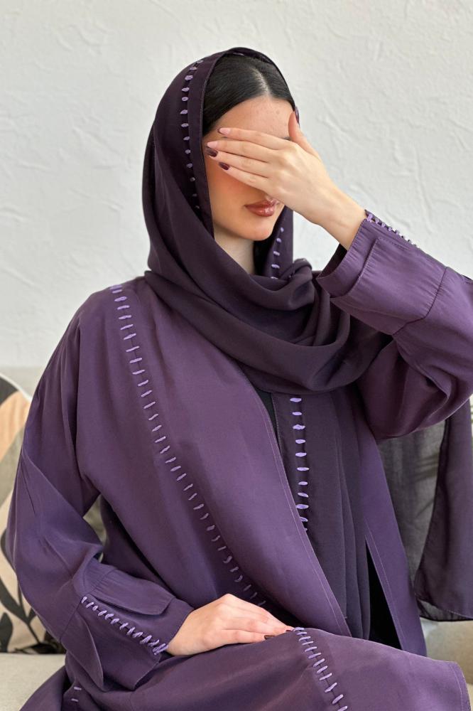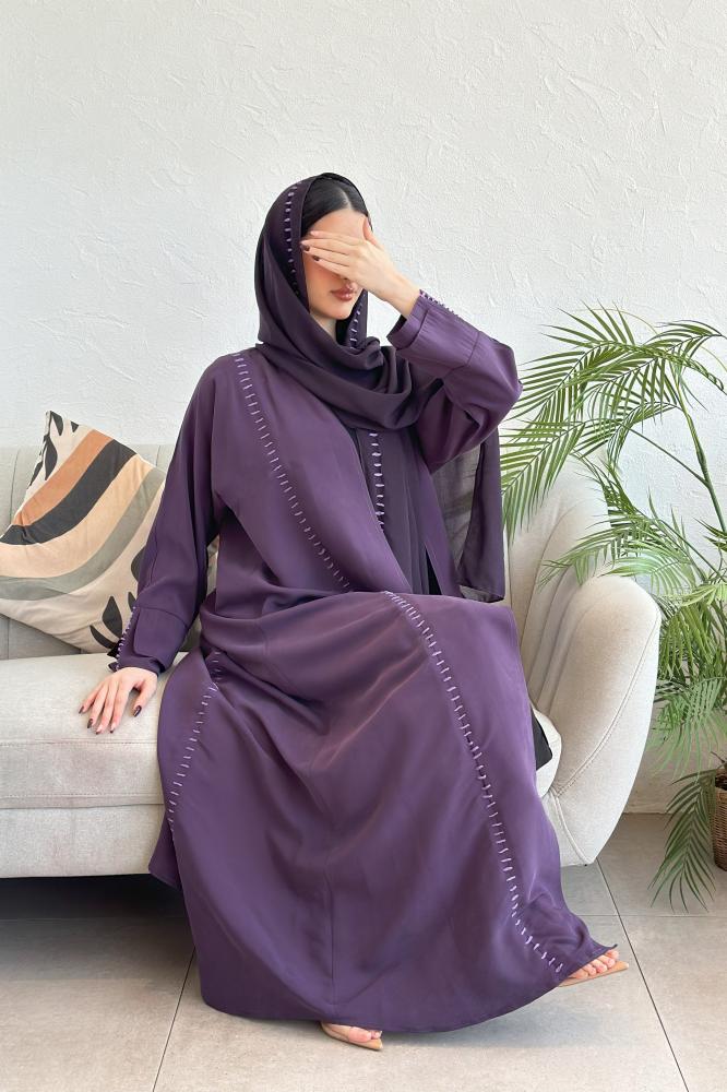 عباية كريب مغسول مطرزة يدوياً بخطوط أفقية تمنحكِ إطلالة أنيقة ومميزة. التطريز اليدوي يضفي لمسة فنية فريدة على كل عباية، حيث تحمل كل غرزة بصمة الحرفي وقد تختلف الغرز قليلاً مما يجعلها قطعة لا مثيل لها، تحمل بصمة الفنان الذي أبدعها. وهي دليل على أصالة العمل اليدوي وتميزه.